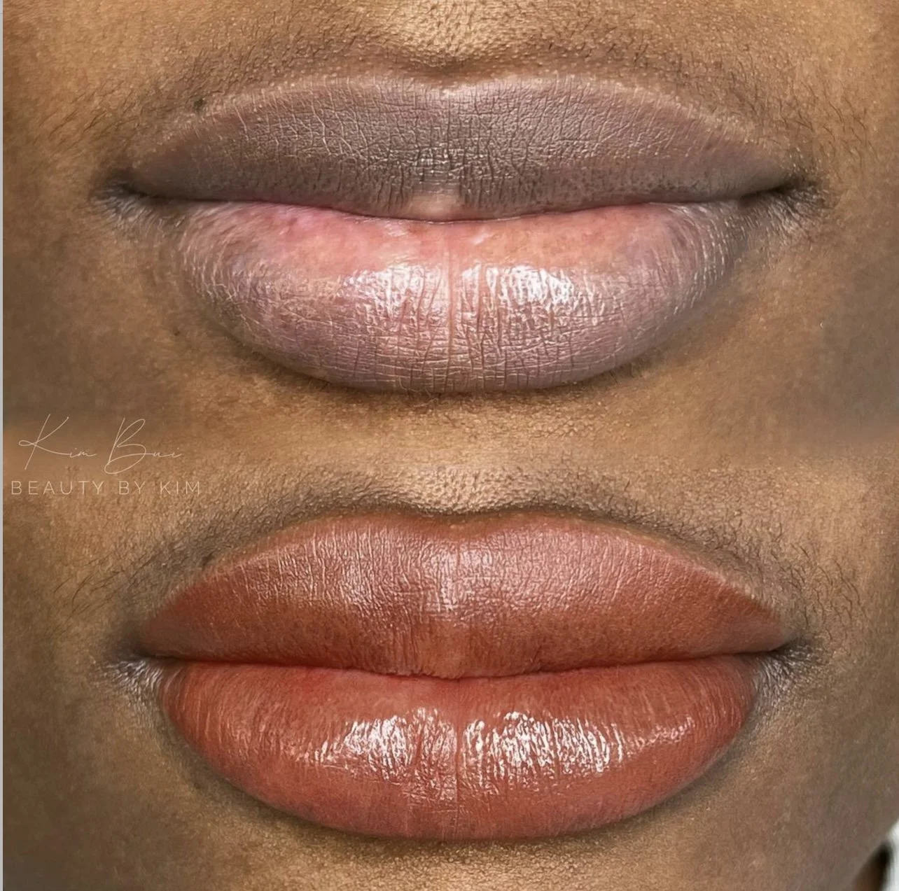 Lip blushing is a semi-permanent tattoo that can enhance the color and shape of your lips and give the impression of more fullness. This is done by depositing color ink into your lips and along your lip line to improve the overall look. The color is subtle to give natural-looking results.